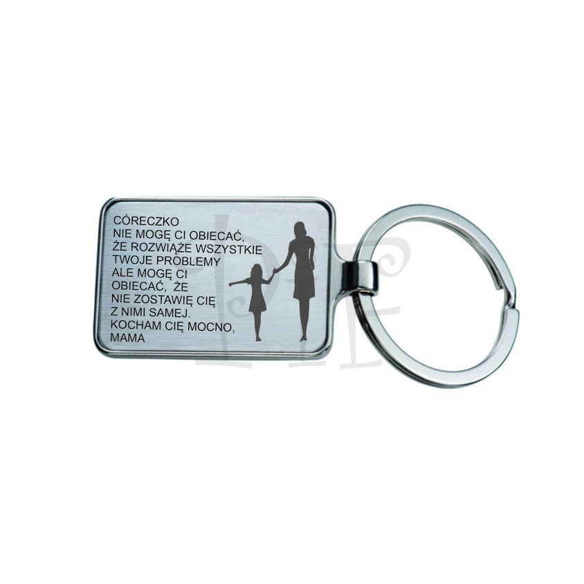 Model ten wykonany jest w formie metalowej zawieszki z grawerem dedykowanym relacji mama–córka. Prosty i elegancki design sprawia, że brelok pasuje zarówno do codziennego użytku, jak i jako pamiątka o dużej wartości emocjonalnej.
