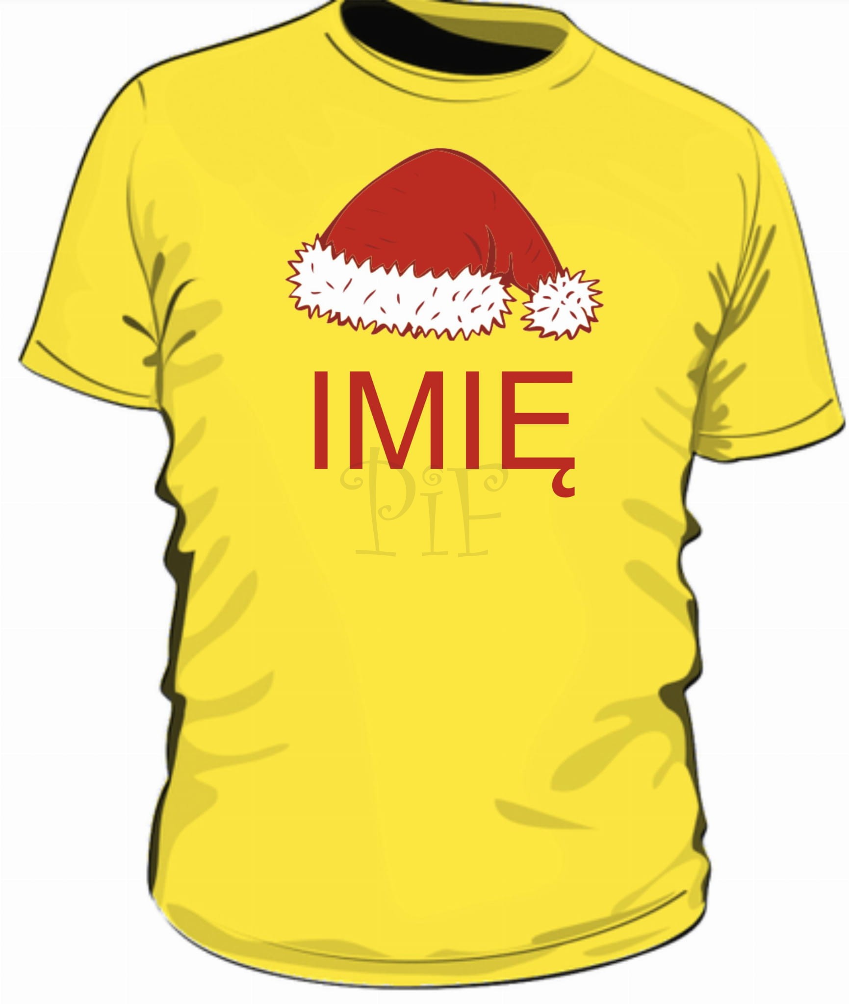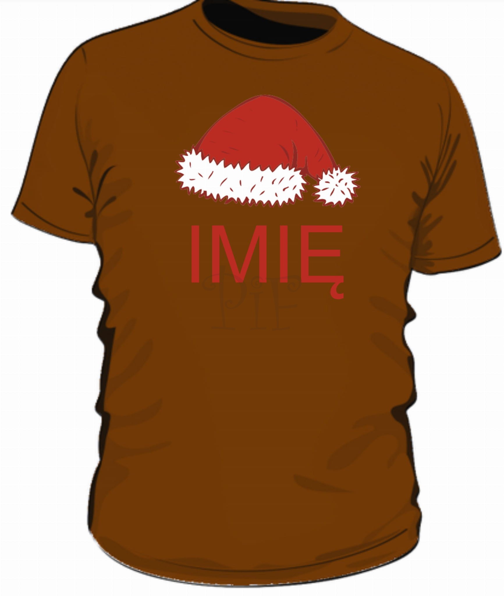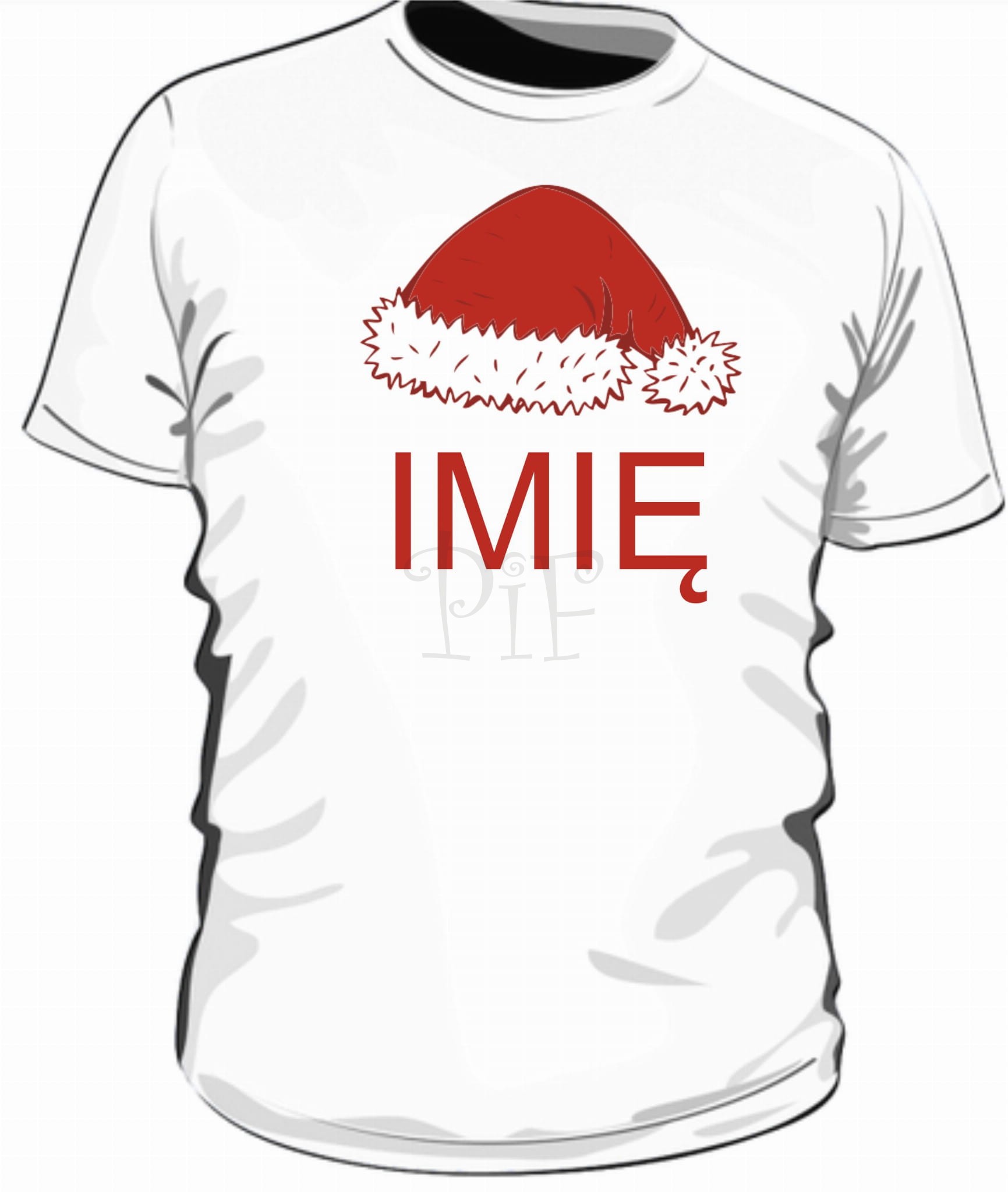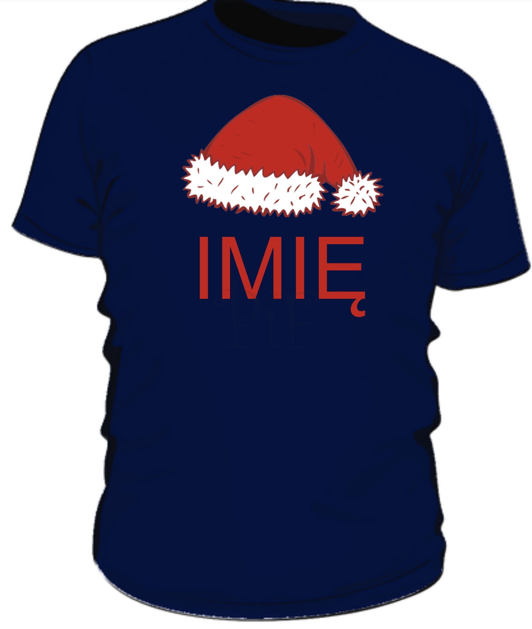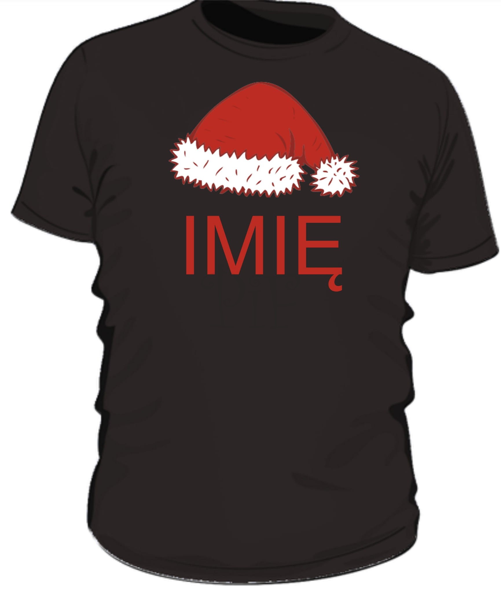 Męska koszulka z czapką Mikołaja i imieniem sprawdzi się jako gadżet, śmieszna koszulka, upominek z okazji Mikołaja.