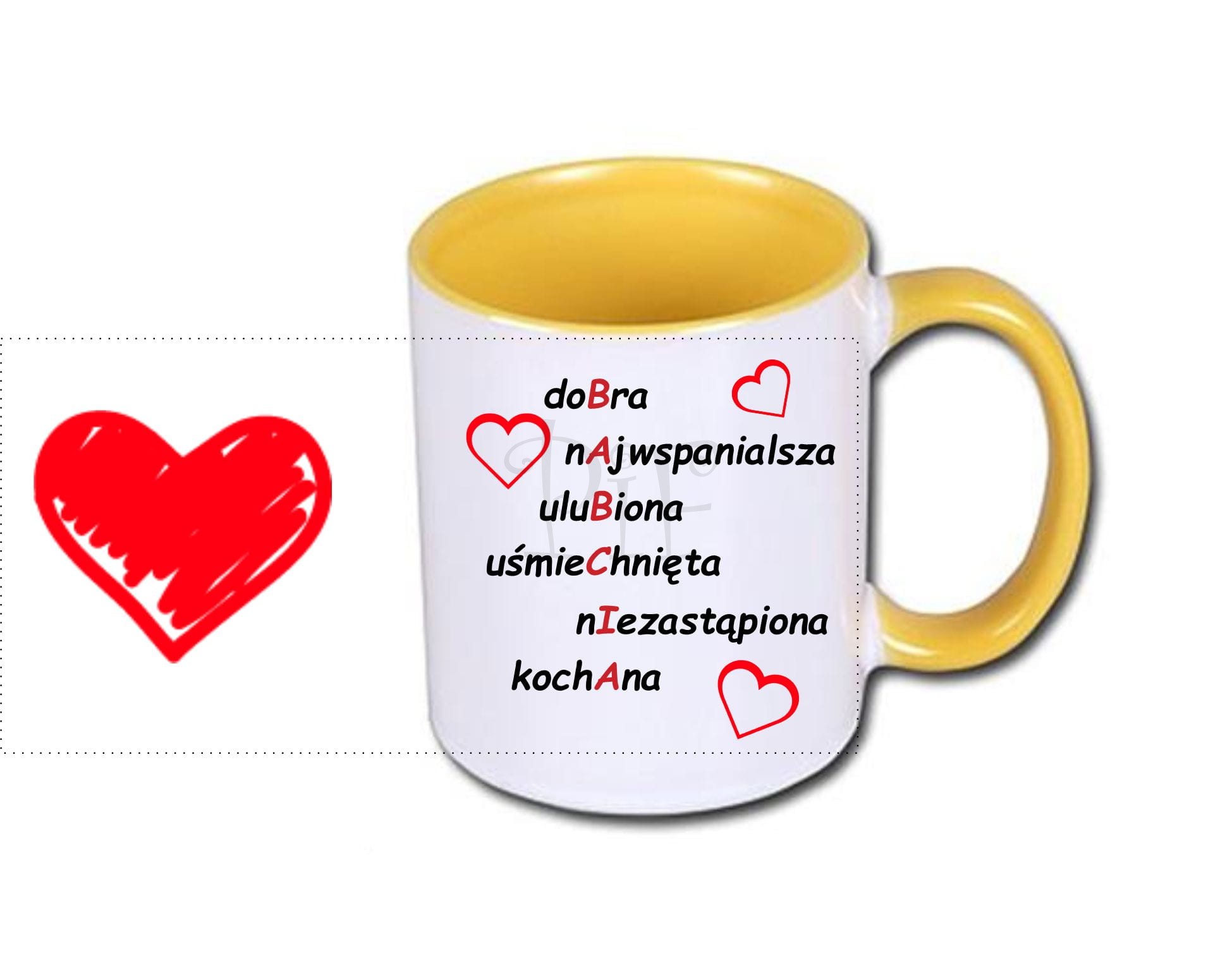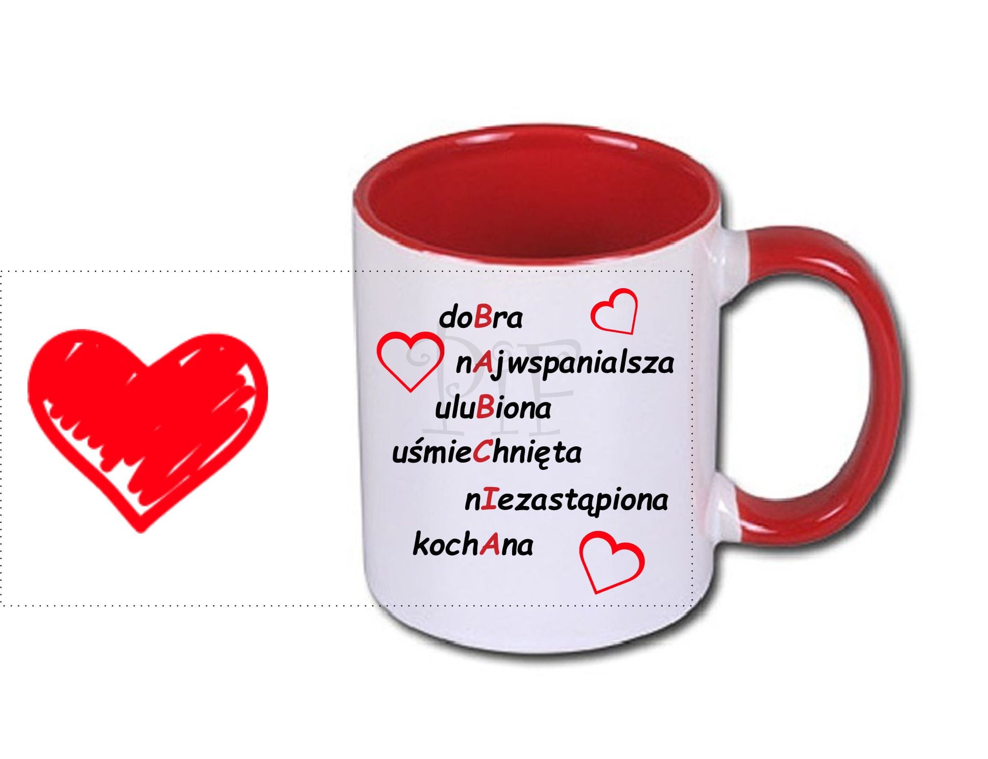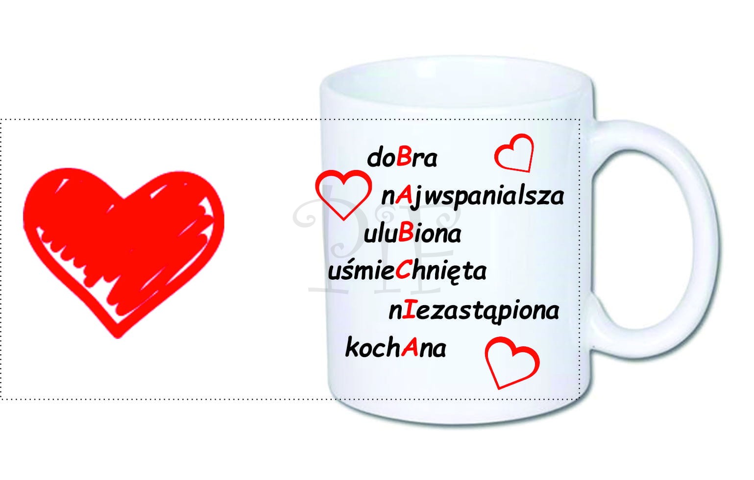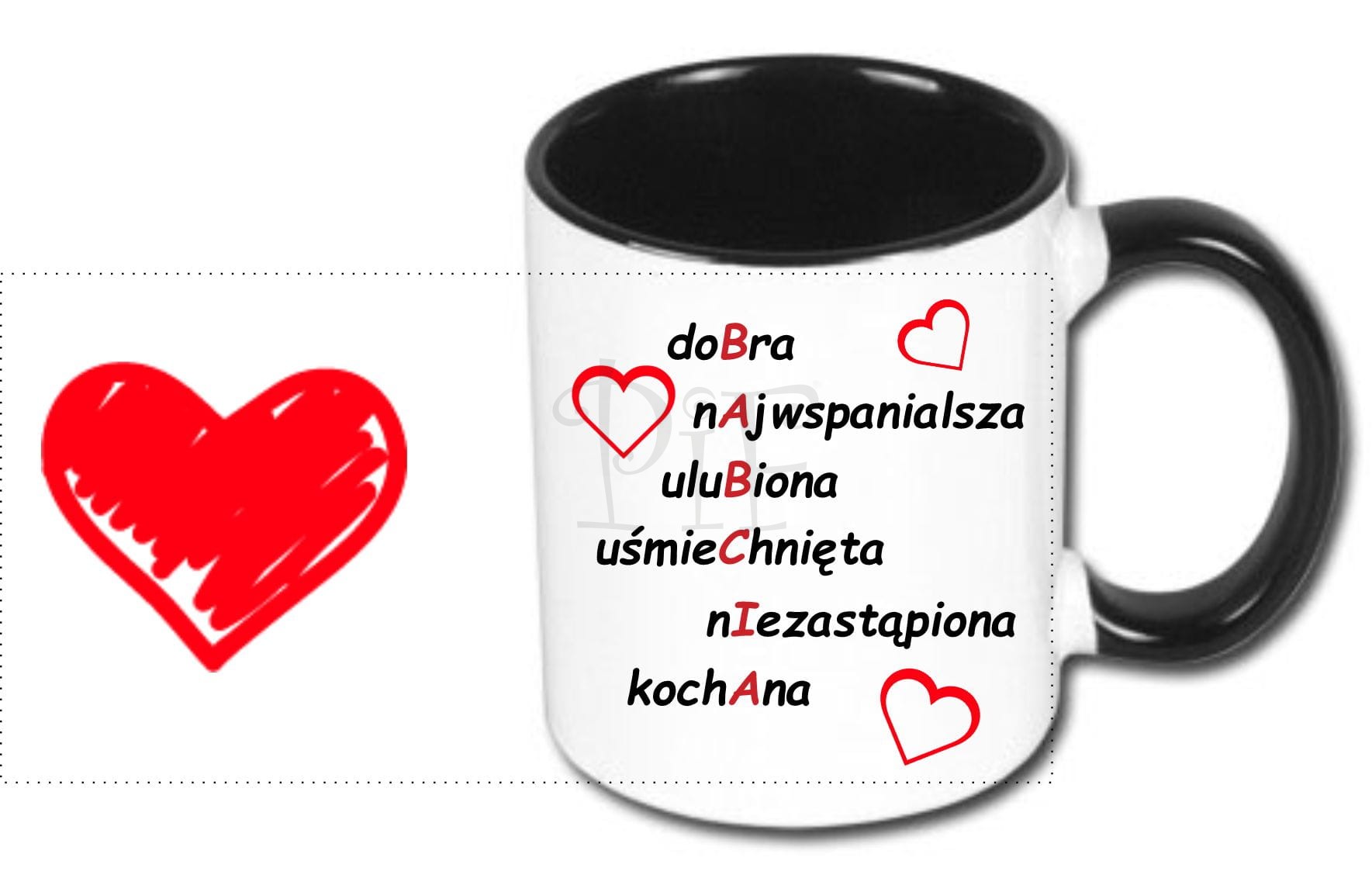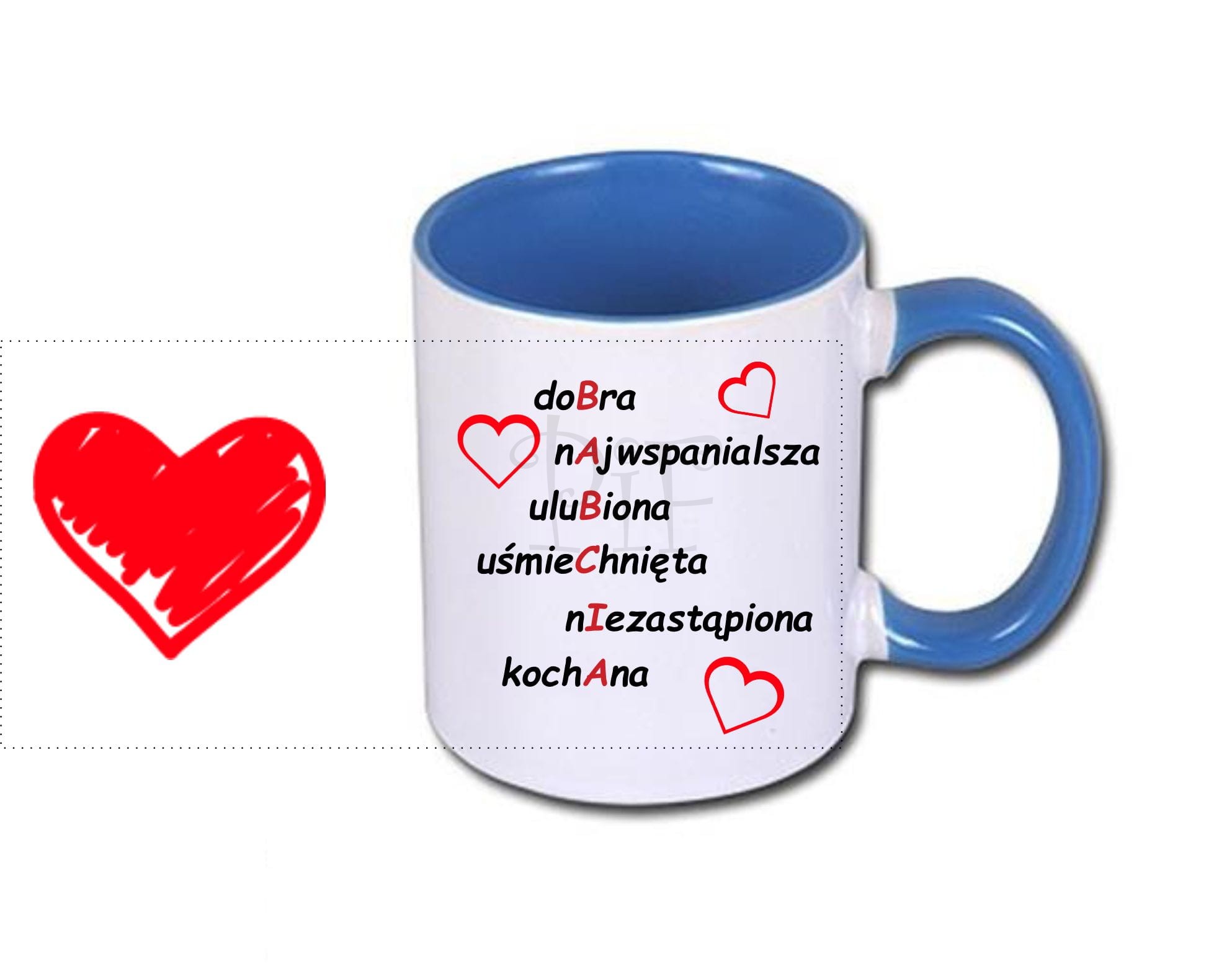 Na kubku istnieje możliwość naniesienia innej dowolnej grafiki czy zdjęcia o wymiarach 20cm x 9cm.