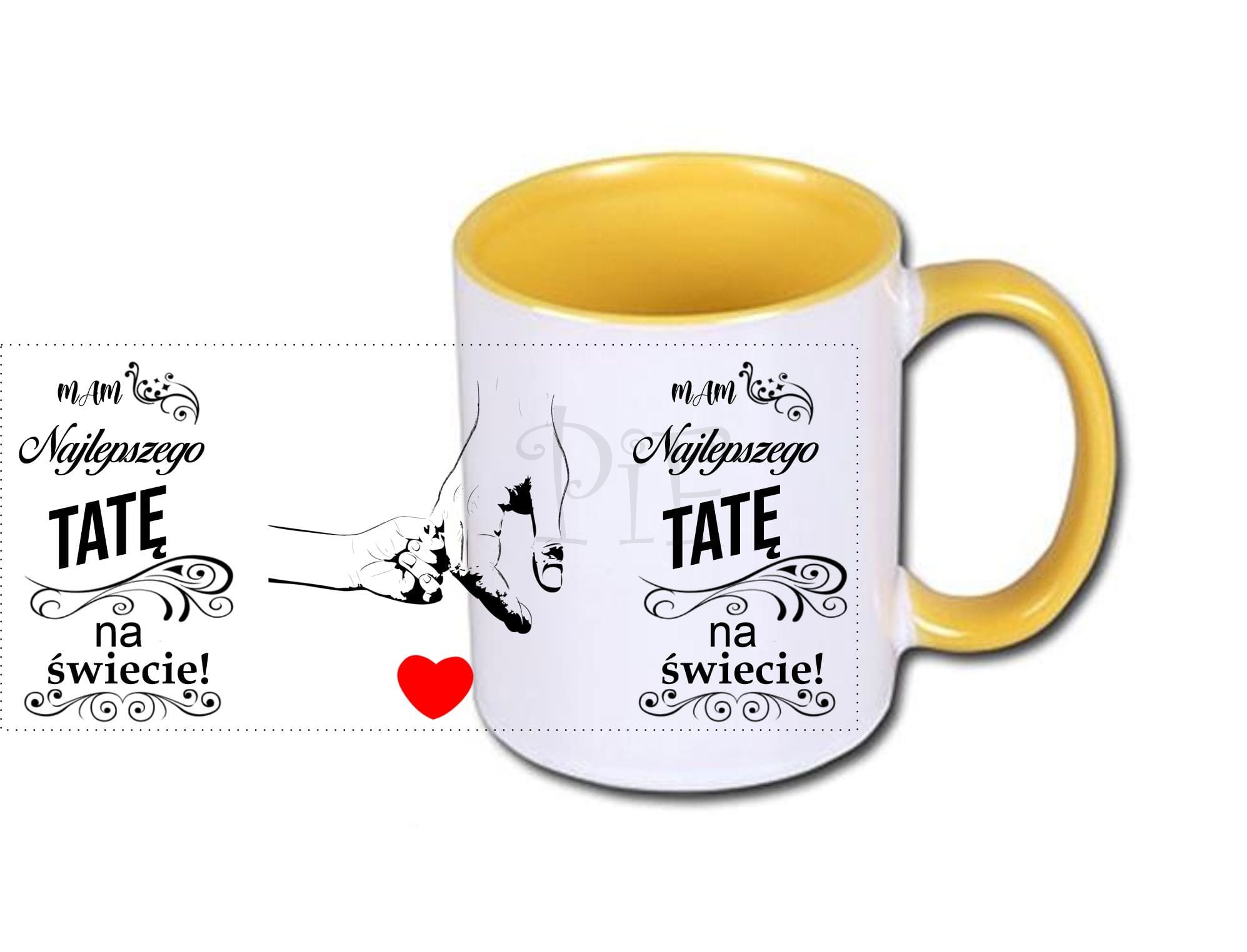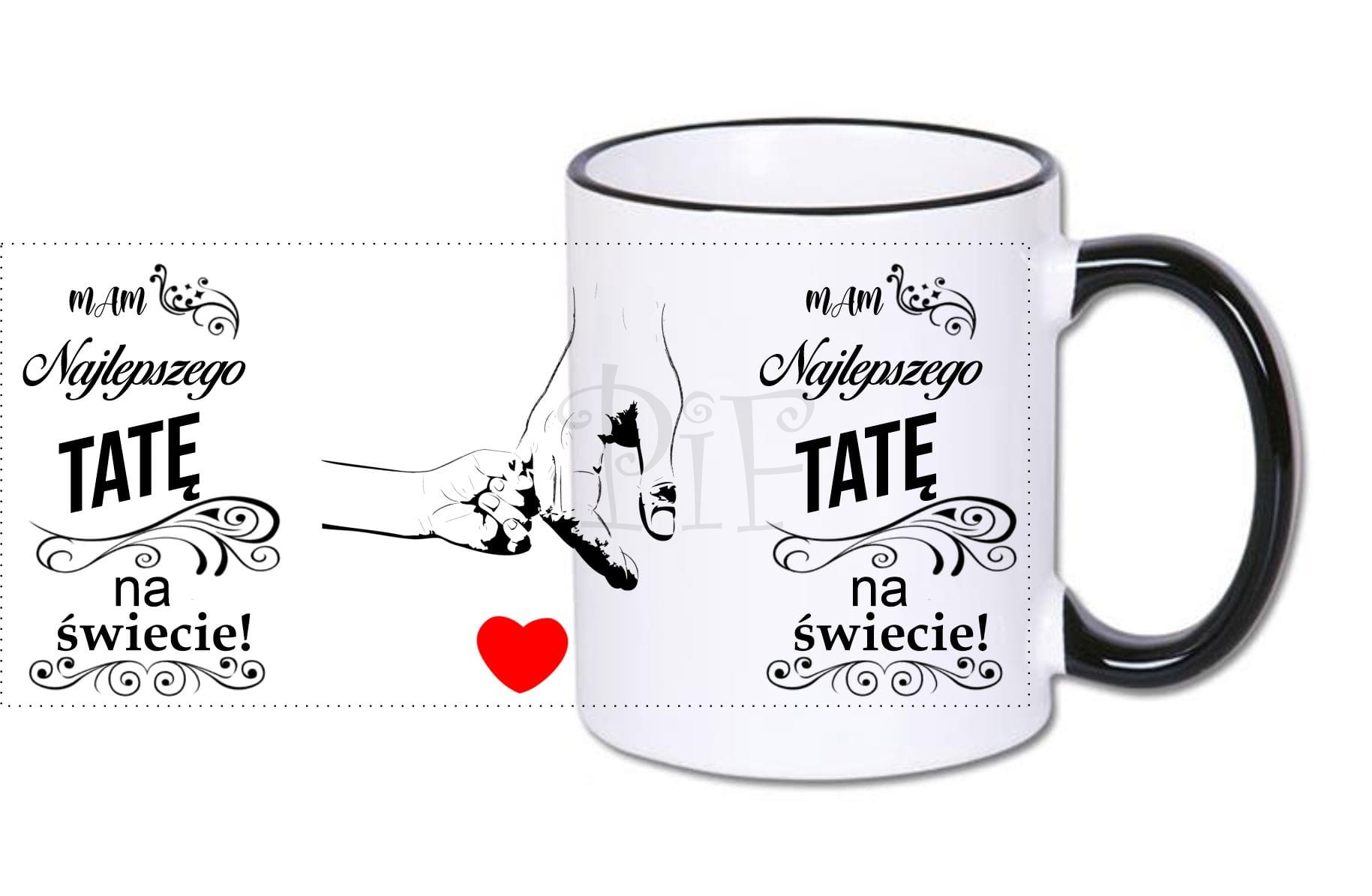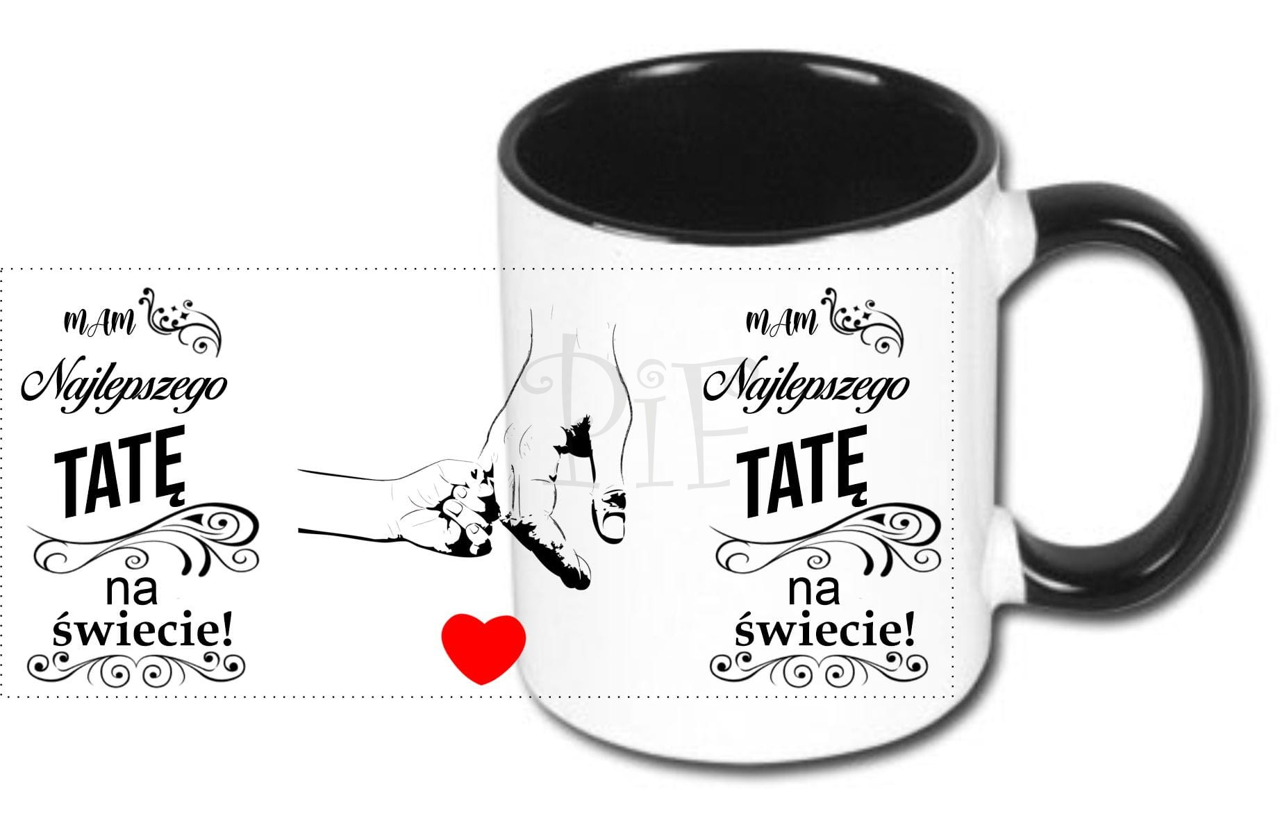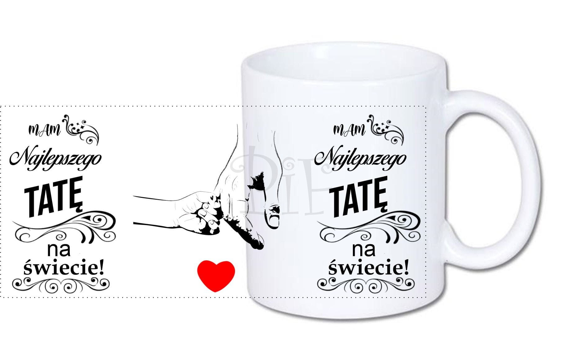 Nadruk jest naniesiony na obu stronach kubka, dzięki czemu będzie to obojętne w której ręce będzie trzymany kubek.