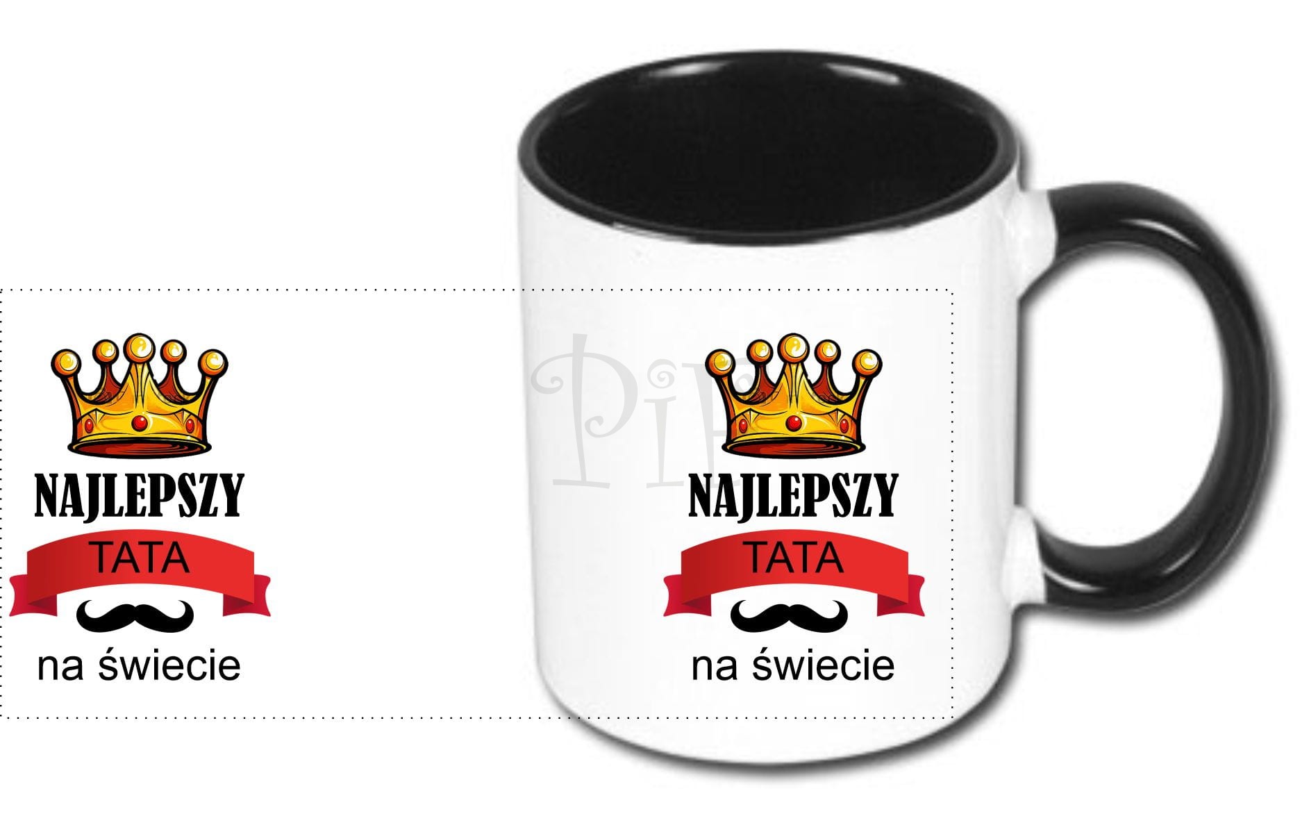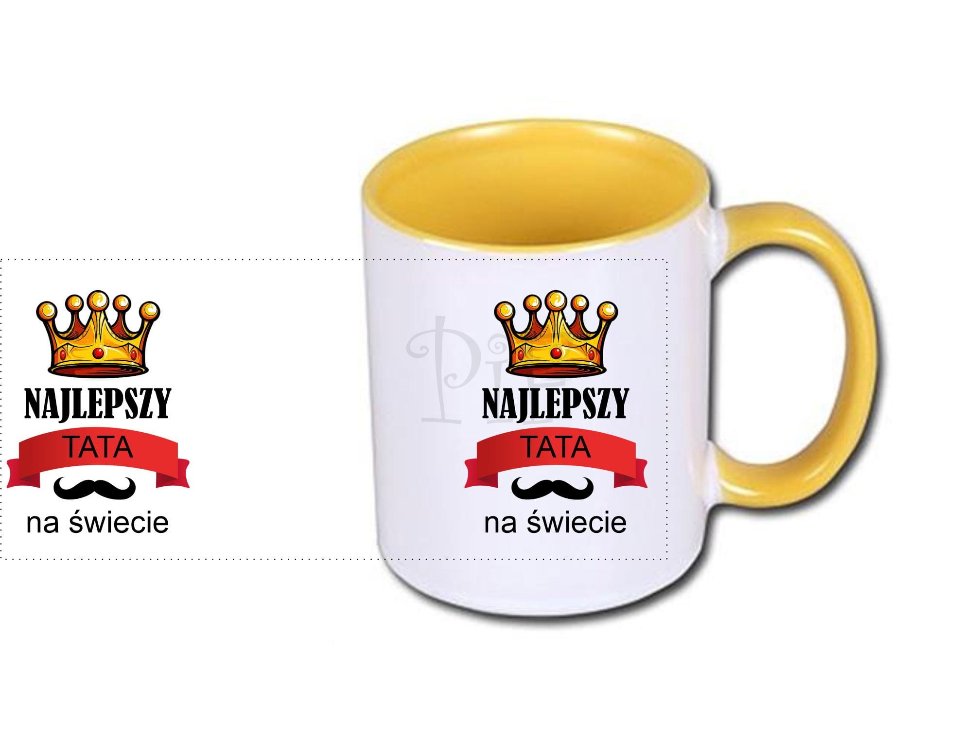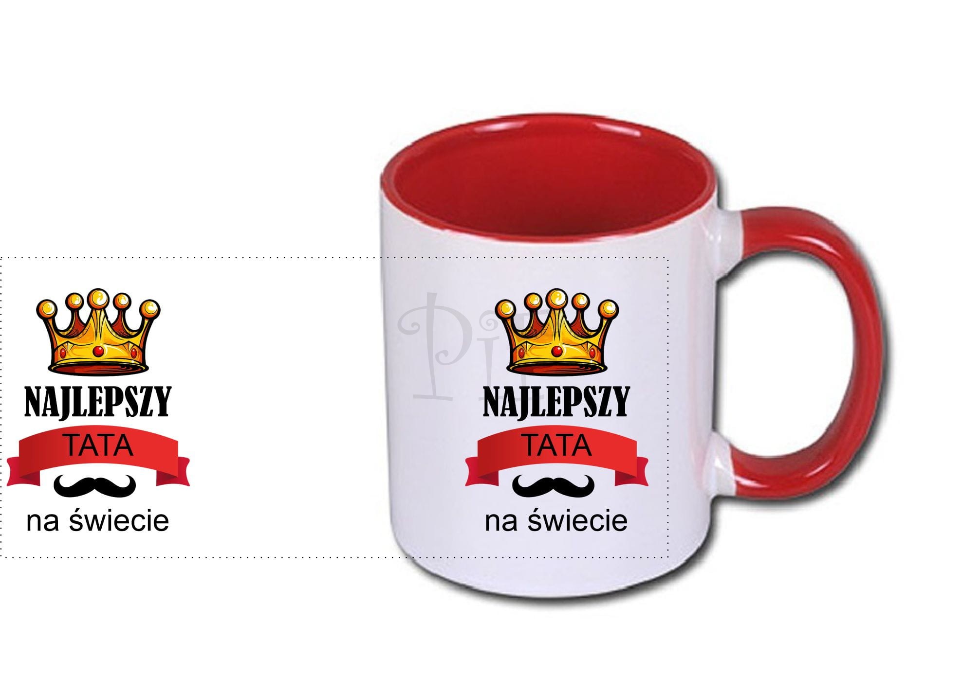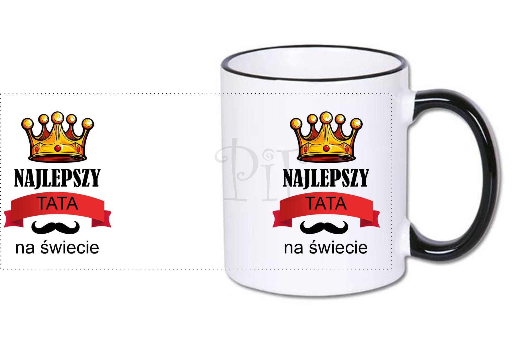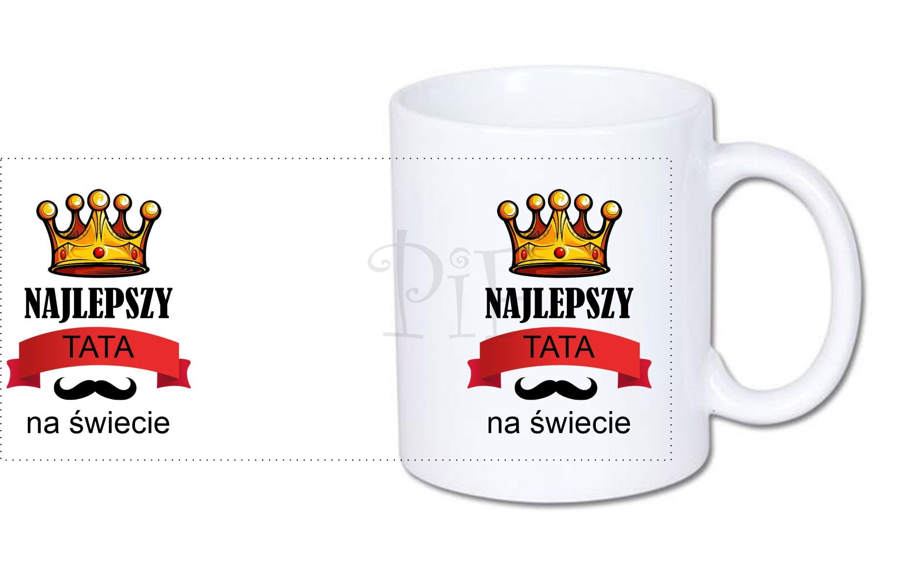 Nadruk jest naniesiony na obu stronach kubka, dzięki czemu będzie to obojętne w której ręce będzie trzymany kubek.