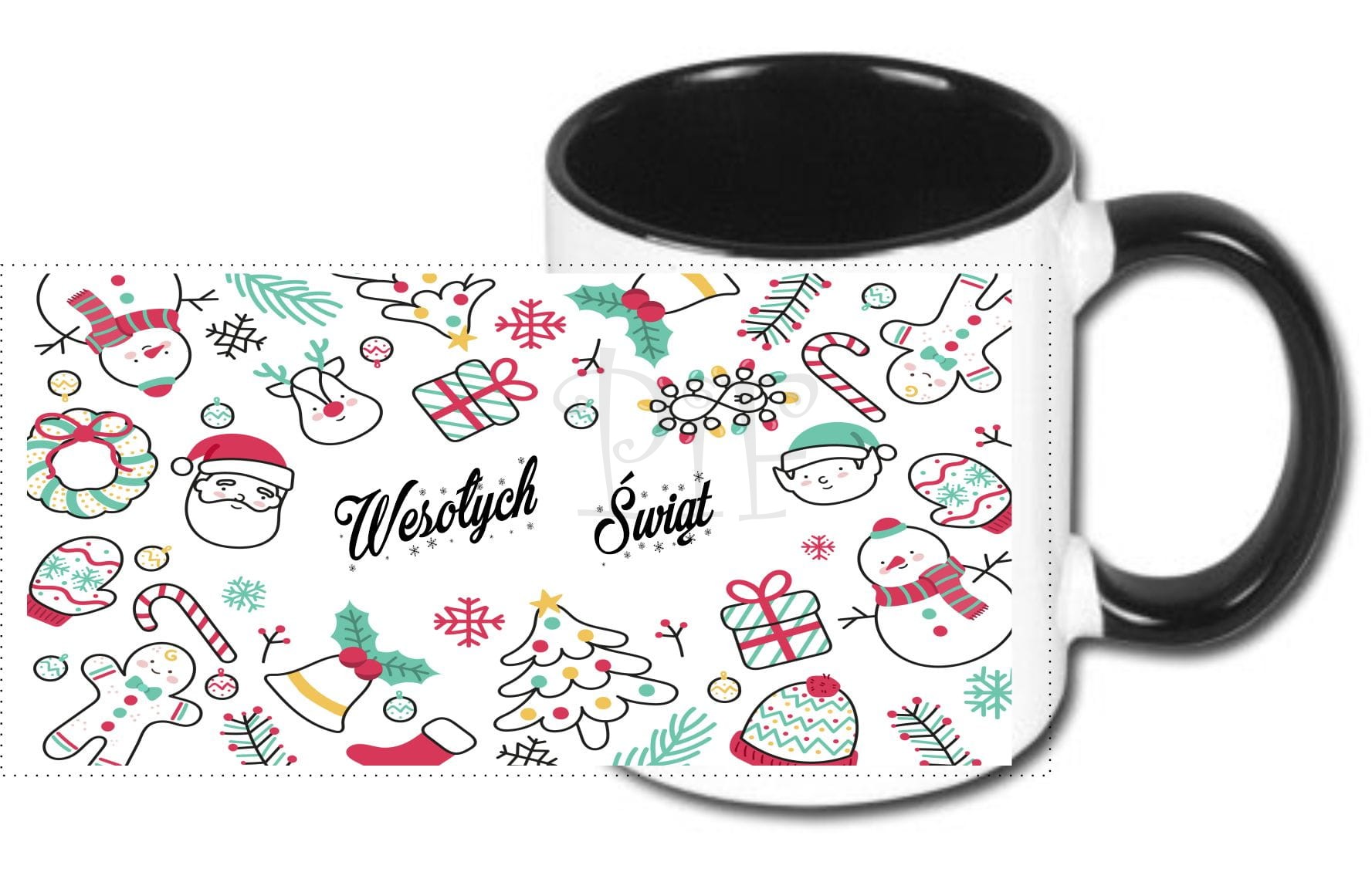 Na kubku zamiast widocznego motywu Bożonarodzeniowego istnieje również możliwość naniesienia dowolnej grafiki czy zdjęcia o wymiarach 20cm x 9cm po wcześniejszym kontakcie.