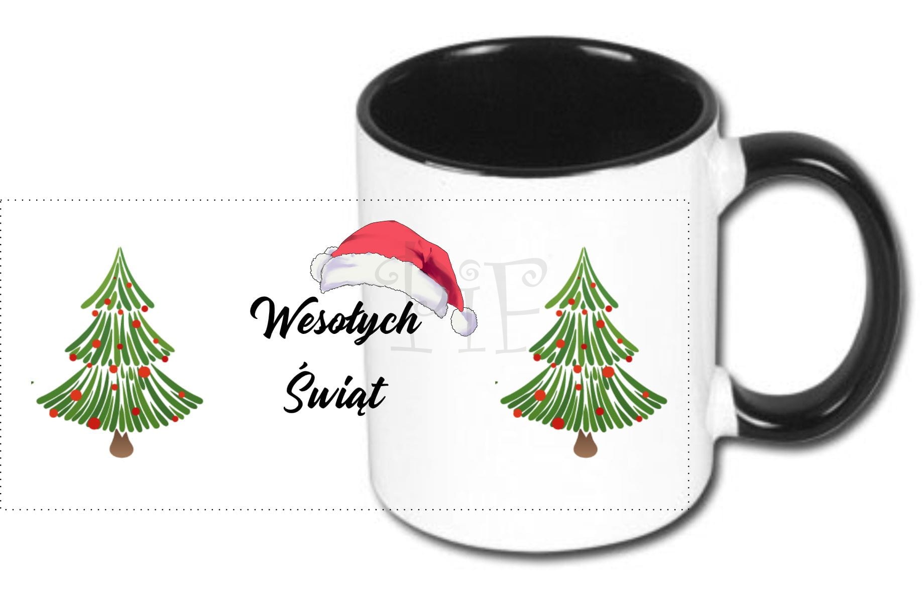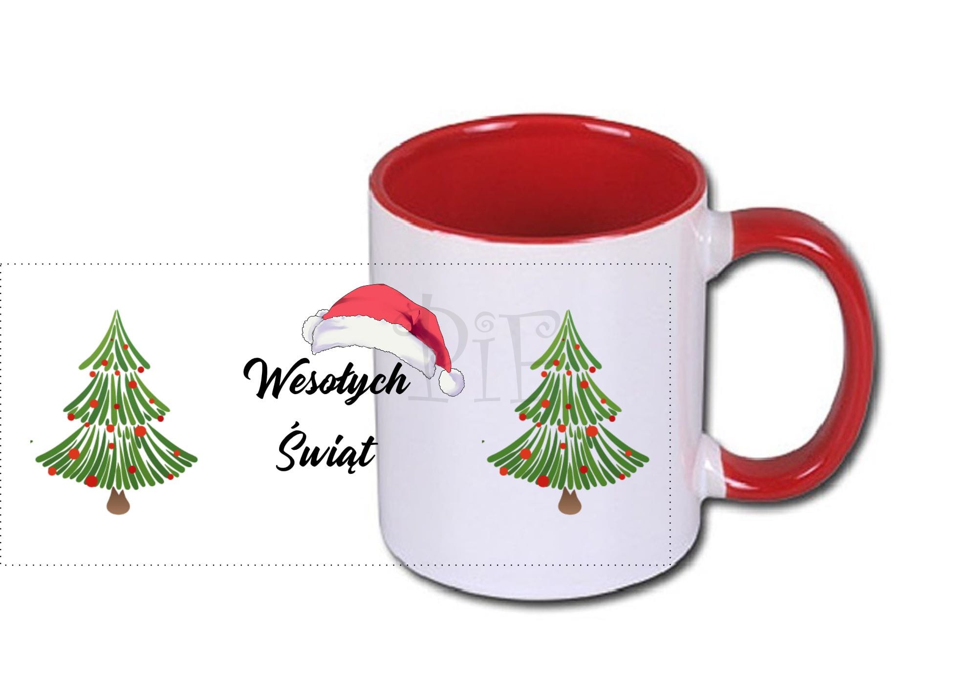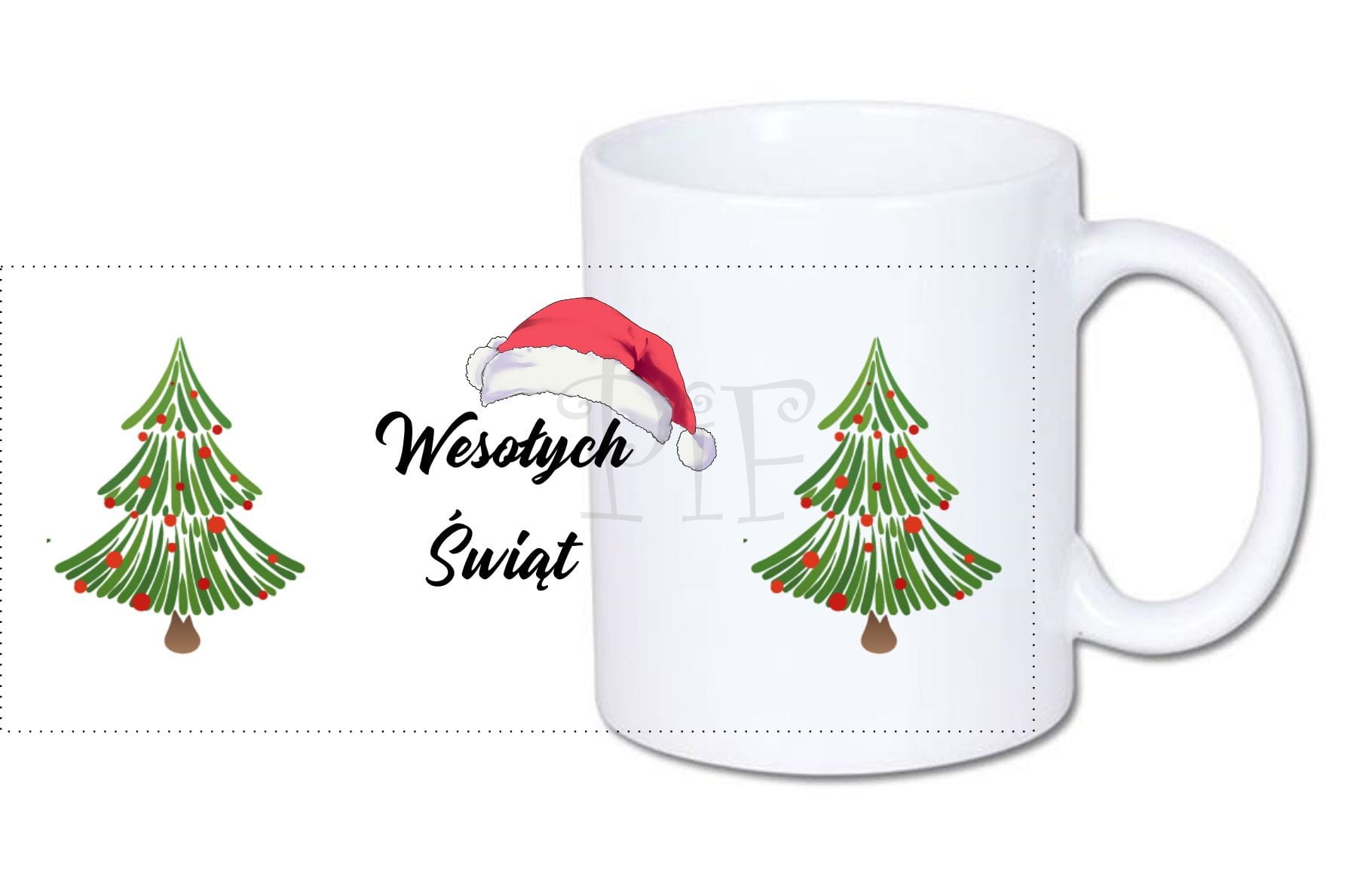 Kubek świąteczny- z czapką Mikołaja i choinką