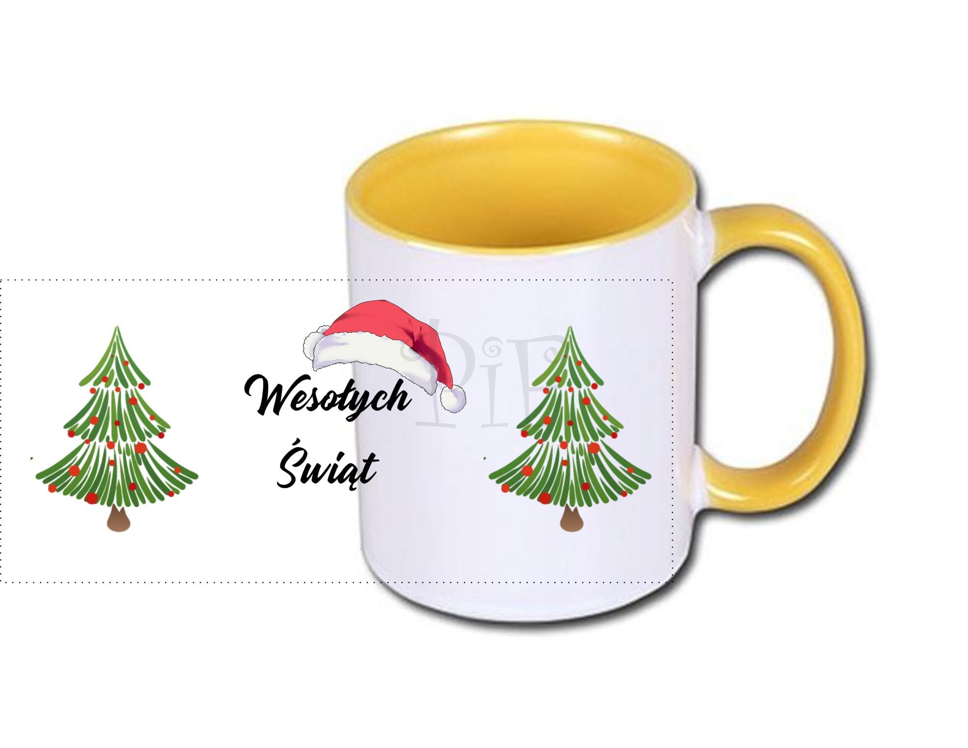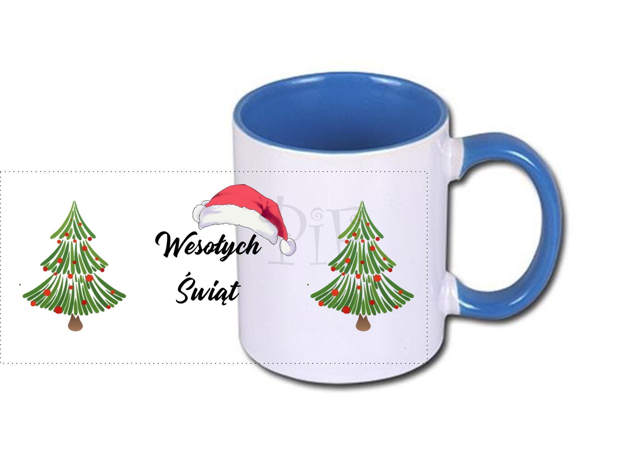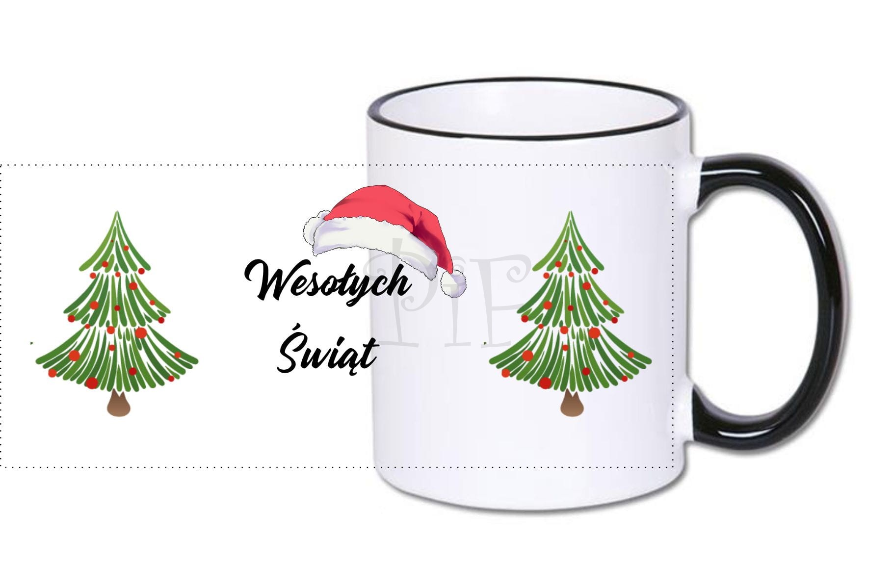 Kubek świąteczny- z czapką Mikołaja i choinką