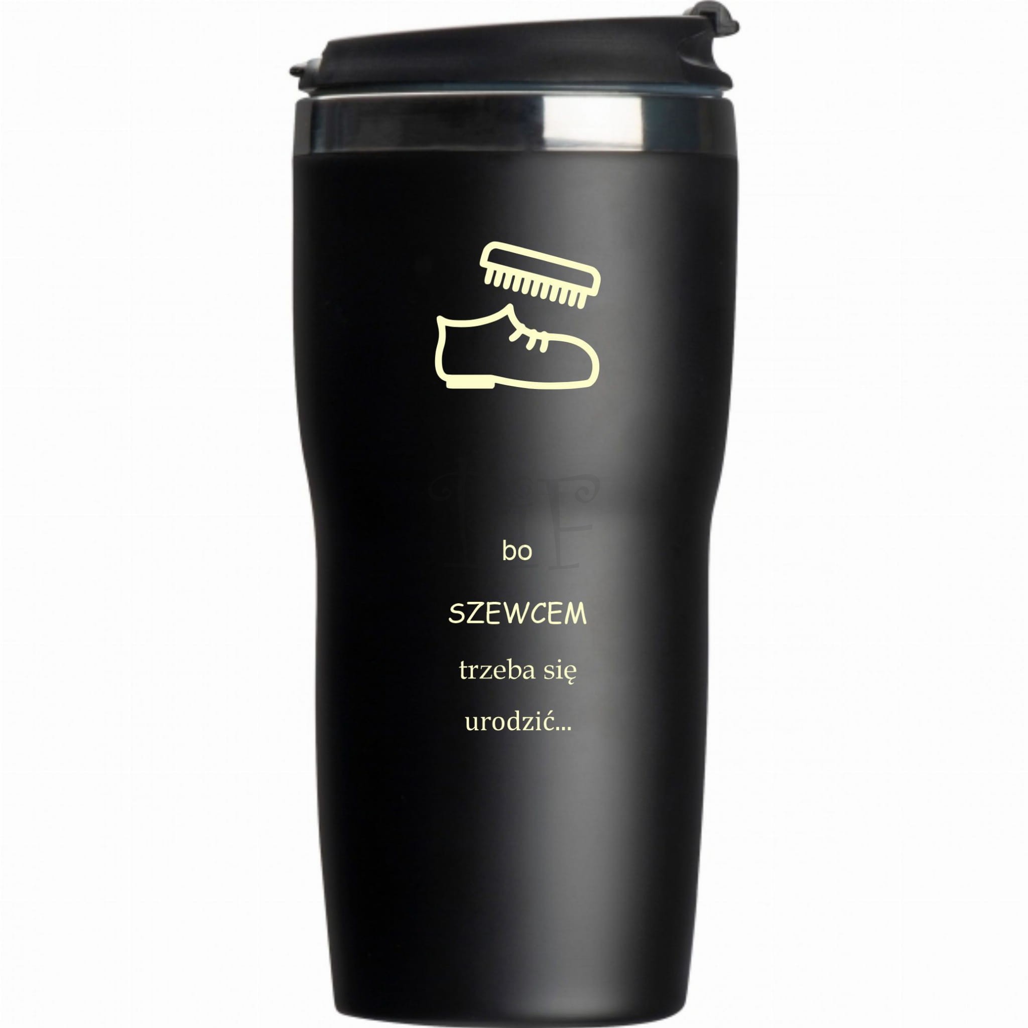 Kubek termiczny z grawerem dla Szewca- bo Szewcem trzeba się urodzić