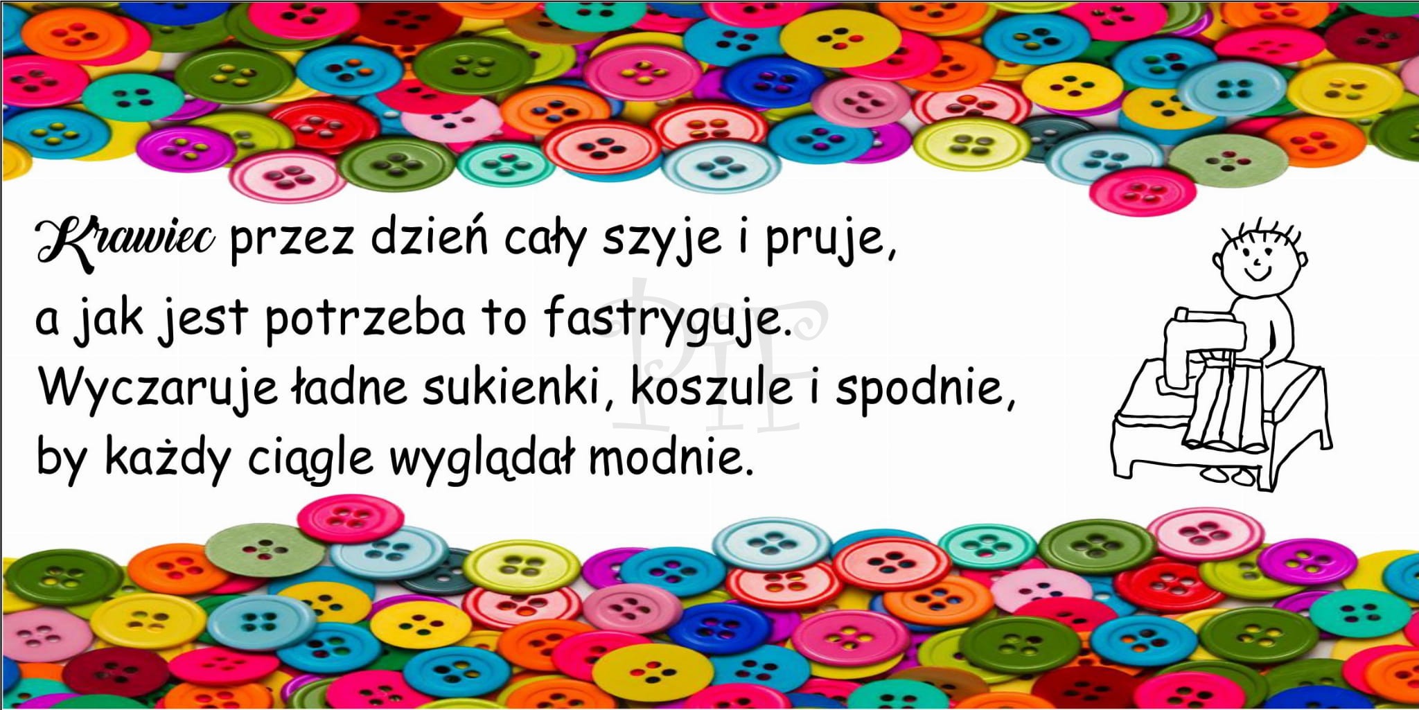 Krawiec przez dzień cały szyje i pruje,