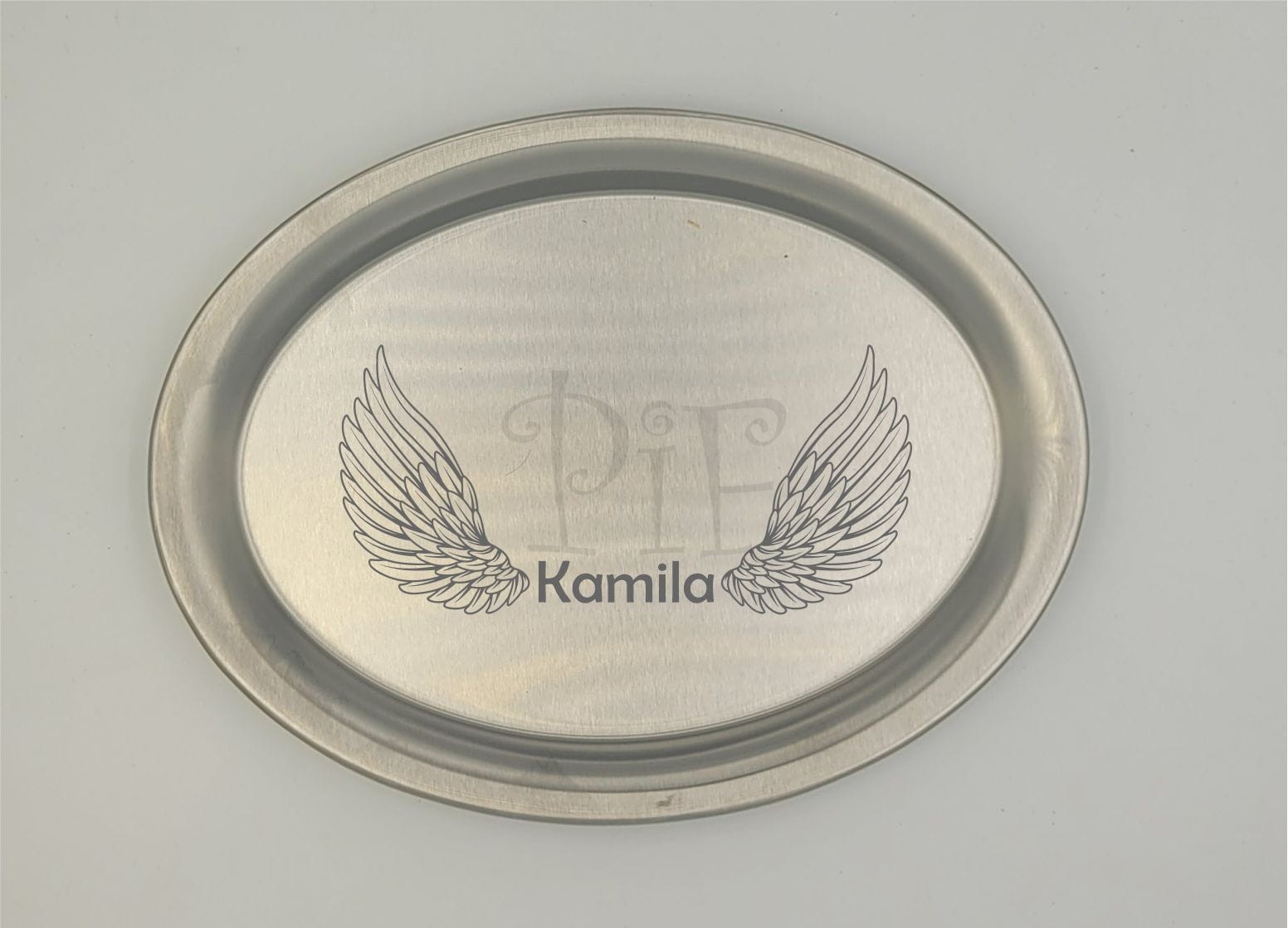 Metalowa taca z grawerem dla Kobiety Anioła.